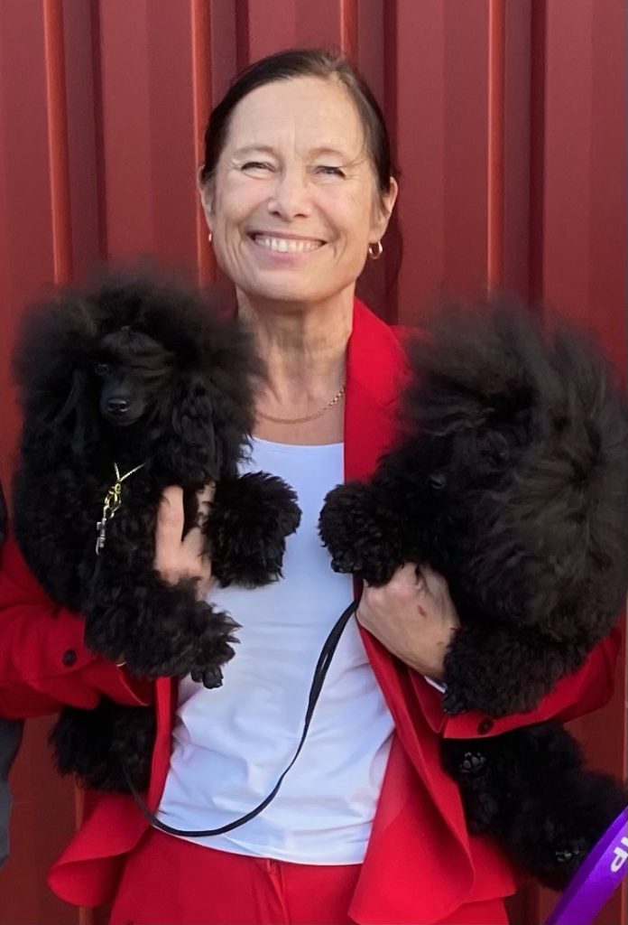 Ny delägare från 2020 och släkting till Sivert. Här med charmtrollen toypudlarna Lottie och Melo.